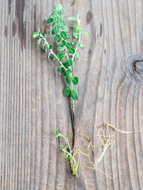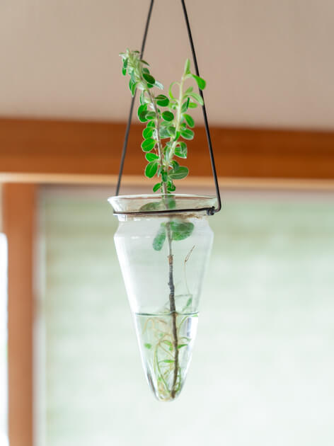 すると根っこが生えてきて、そのまま室内で冬越し。春になって、新芽が出てきました。