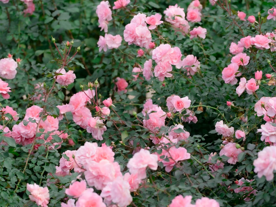 野バラが一斉に!かれんな花姿とピンク色が、アイドルみたいなかわいらしさ。