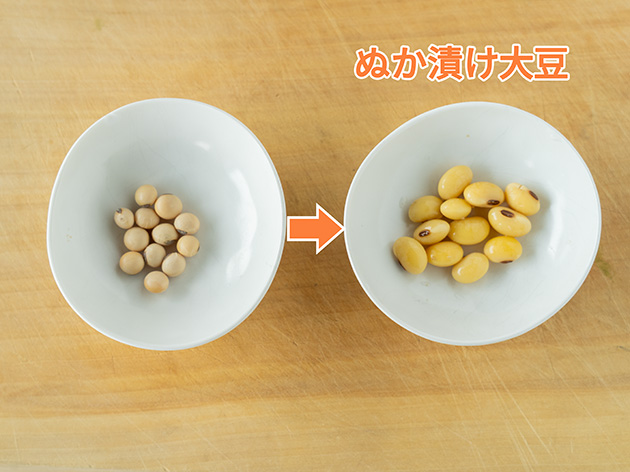 この本にも、「ぬか漬けをおいしくするために入れるといいもの」がいくつか紹介されていますが、乾燥大豆は知らなかった。豆がぬか味噌の水分を吸ってくれるんだそう。