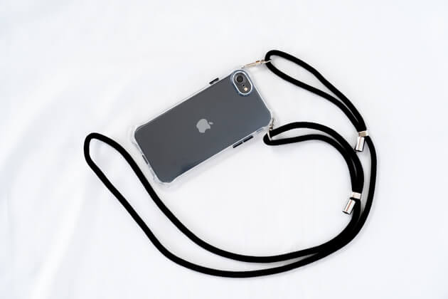 購入したのはシンプルなストラップでカンタンに長さの調整ができるもの。スマホケースは、シリコン製でクリアな透明。iPhoneにピタッとハマって安定感があります。
