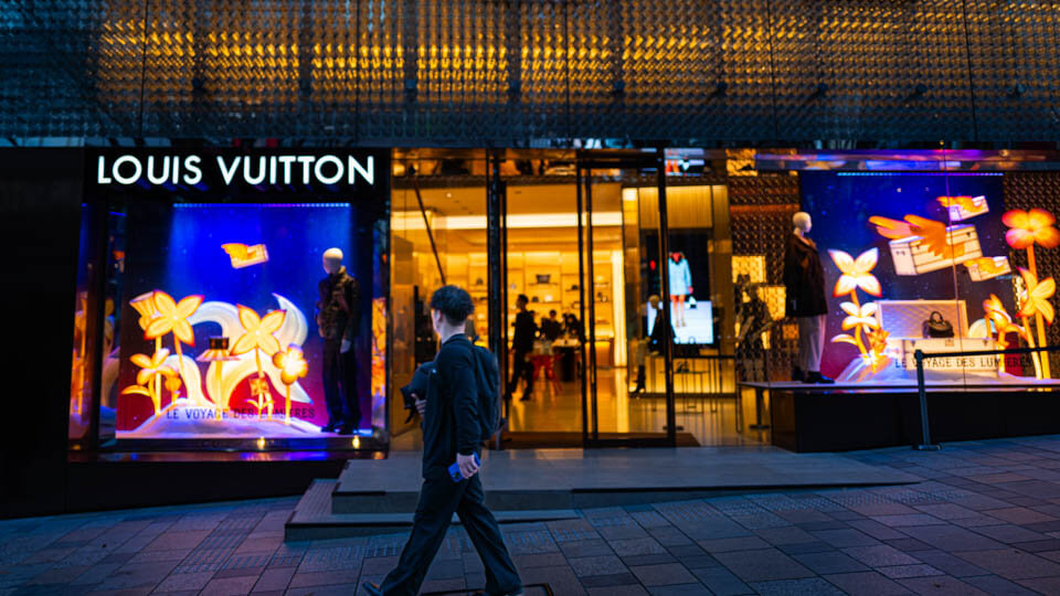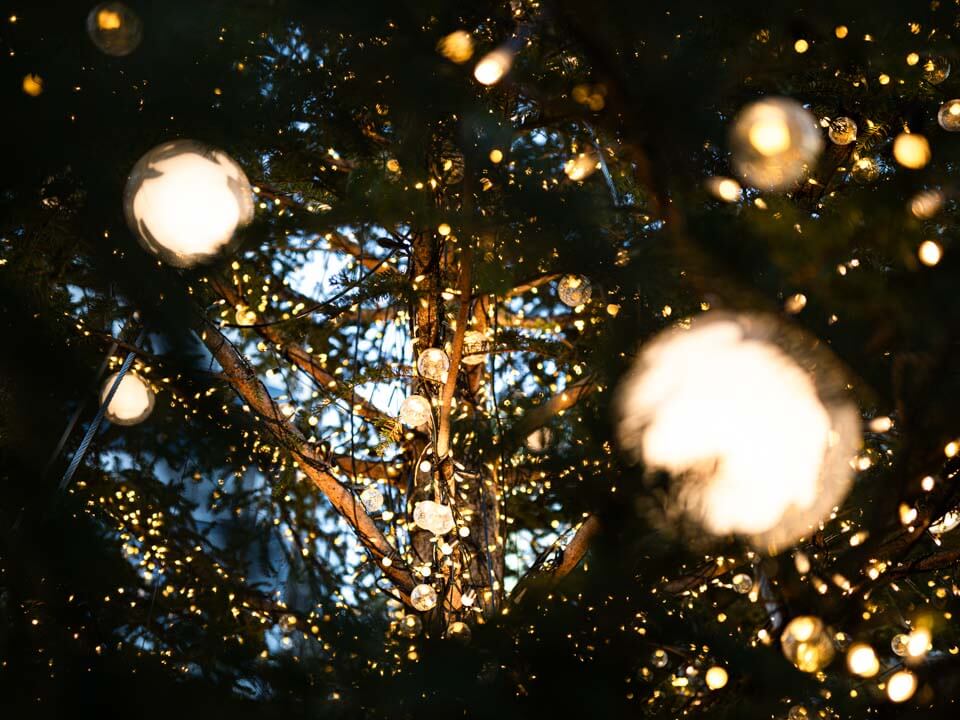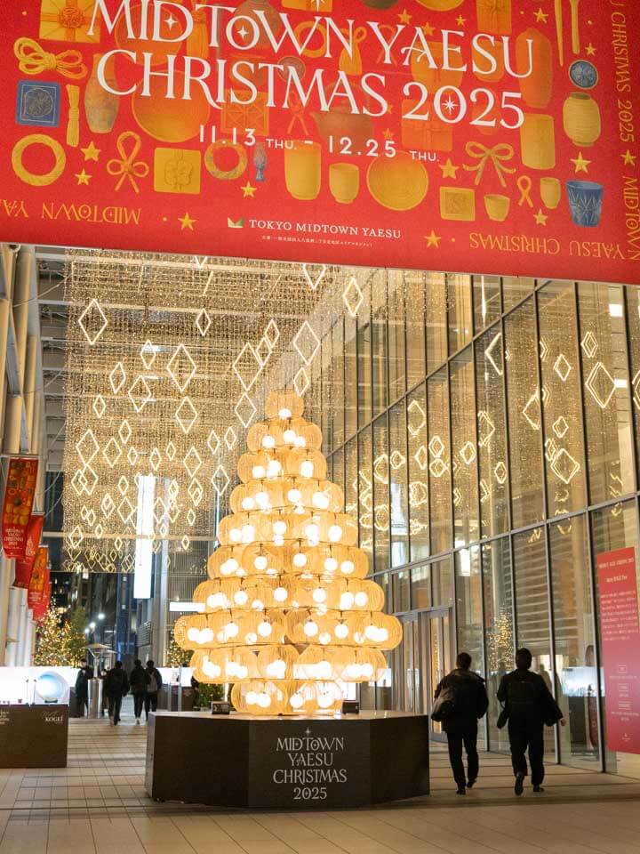 麻布台ヒルズのクリスマスツリーは、伝統的で落ち着いた雰囲気。シャンパンゴールドの光が暖かい。