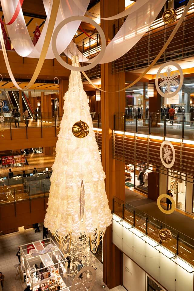 中に入ると、テキスタイルで作られた大きなホワイトクリスマスツリーが。