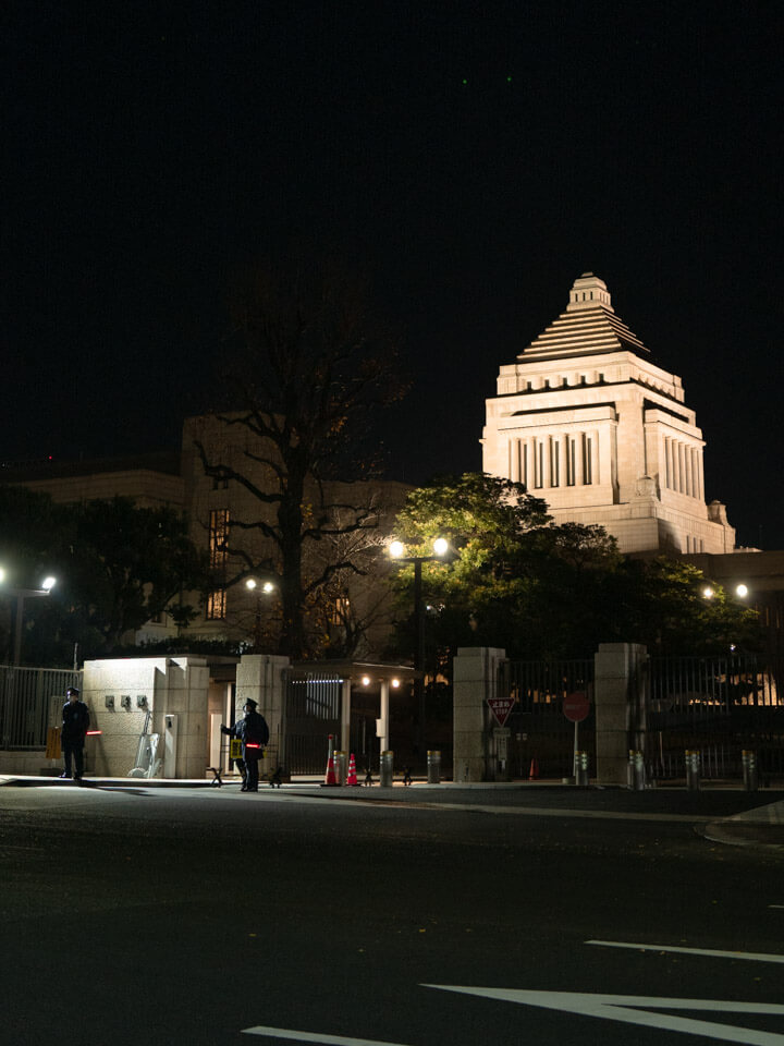 少し歩くと、夜空に国会議事堂がクッキリと浮かんでいました。