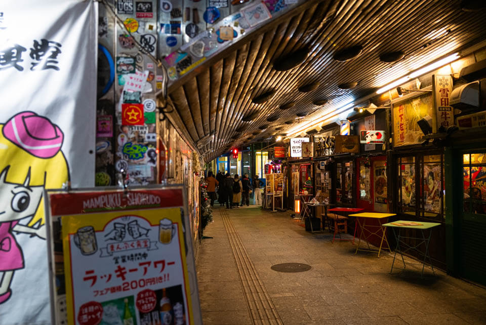 有楽町駅高架下の飲み屋街・有楽コンコースを通り抜けて進みます。