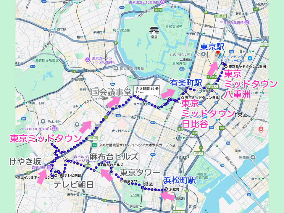 東京タワーから六本木、国会議事堂、東京駅まで3時間半で歩けちゃうなんてね〜。