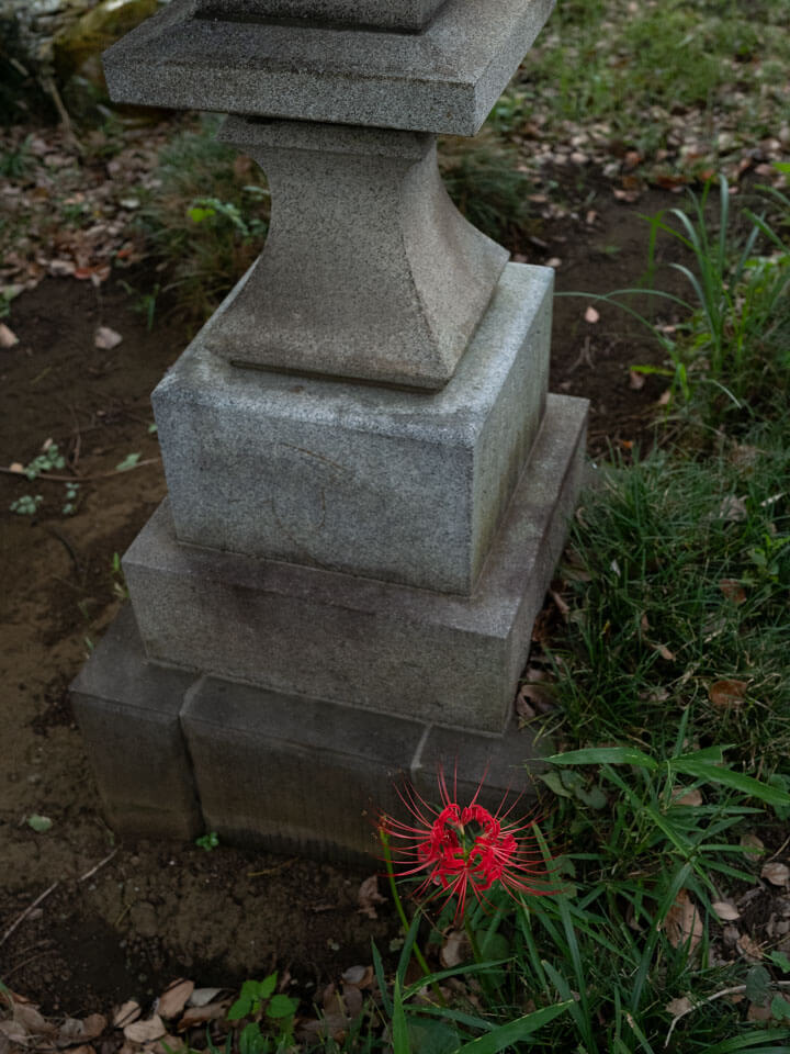 10月の声が聞こえるころ、石灯籠の足元にはヒガンバナが咲きました。