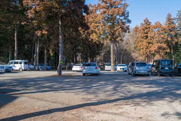住宅街の先に現れる泉の森・第二駐車場。ここからもう、森が始まってます。